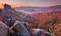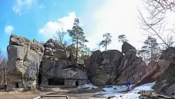 The Rocks of Dovbush (Ukrainian: Скелі Довбуша, romanized: Skeli Dovbusha) is a group of natural and man-made structures carved out of rock at around 980 m ASL approximately 3 km from the village Bubnyshche in the Ivano-Frankivsk Oblast (province) of western Ukraine. The name of the formations comes from a leader of the opryshky[1] movement, Oleksa Dovbush.