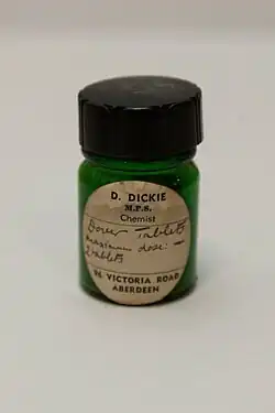 - ^ The Extra Pharmacopoeia Martindale. Vol. 1, 24th edition. London: The Pharmaceutical Press, 1958, page 812. This reference also cites "Tablets of Ipecacuanha and Opium (B.P., Ind. P.) Tab. Ipecac. et Opii (B.N.F.), Dover's Powder Tablets. Unless otherwise specified tablets each containing 5 grains of powder of ipecacuanha and opium are supplied."
