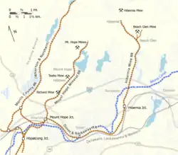 In the 1870s, Dover businessman George Richards sought the construction of a railroad to carry iron ore from New Jersey's Hibernia mines to the furnaces at High Bridge and in the Lehigh Valley in Pennsylvania for use with the Pennsylvania ores. Richards first suggested to Sam Sloan, the president of the Delaware, Lackawanna & Western Railroad, that the DL&W build a spur to along the north side of the Rockaway River through Dover to the Hibernia mines. Sloan turned down the idea.