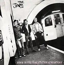 "Down in the Tube Station at Midnight" is a single by the Jam, the second single from their third album, All Mod Cons. Released in October 1978, it reached No. 15 on the UK Singles Chart.[1] The single was backed by a cover version of the Who's song "So Sad About Us", and the song "The Night", written by Bruce Foxton.