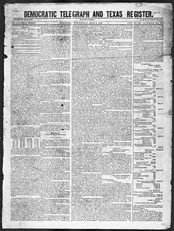 - ^ "Telegraph and Texas Register", Handbook of Texas, Texas State Historical Association, retrieved January 13, 2010