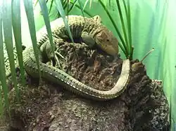 Dracaena (romanized form of the Ancient Greek δράκαινα - drakaina, "female dragon"[1]), is a genus of lizards, also commonly called caiman lizards or water tegus, in the family Teiidae, along with tegus and ameivas. Caiman lizards are native to South America, where they are found in Brazil, Colombia, Ecuador, Paraguay, and Peru. These semiaquatic lizards spend a lot of time in the water and inhabit marshes, streams, and flooded forests. Caiman lizards often bask on branches overhanging the water.