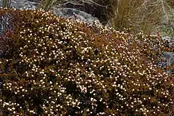Dracophyllum pronum, commonly known as trailing neinei, is a species of sprawling shrub endemic to the South Island of New Zealand. It was first described by Walter Oliver in 1928 and gets the specific epithet pronum for its prostrate growth habit. In the heath family Ericaceae, it inhabits montane and subalpine areas and reaches a height of just 1–25 cm.[2][1]