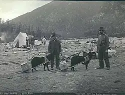 Drafting continued through the early 19th century as a practical means of transportation, particularly in rural areas. They served various purposes, including transporting goods, assisting in farming tasks, and even carrying passengers. In early Victorian Britain, dogcarts were associated with bakers, and when they used the area reserved for pedestrians, were considered a nuisance.[10] In 1839, the Metropolitan Police Act introduced a ban on their use within a 15-mile radius of Charing Cross, citing both concerns for animal welfare and public health. Overworked dogs were believed to be more vulnerable to rabies, and a notable decline in reported cases followed by 1841 seemed to support this view. That same year, a nationwide ban on dog-drawn carts was enacted across the United Kingdom.[11]