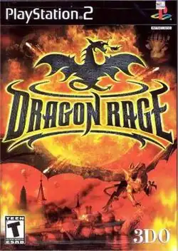 Dragon Rage is a PlayStation 2 game by The 3DO Company. The player controls an escaped dragon named Cael Cyndar on a mission to save the dragon race from extermination by the orcs. Cael's guide is Adara the Sprite. The dragon's attacks include ramming, biting, grabbing & dropping, and breathing fire. Whenever Cael eats orcs, he gains Mana points. Eating farm animals replenishes Health. When Cael releases captured sprites, they give information or teach Cael about his magical powers. Orc forces include ground units (orc warriors), naval units (ships), air units (hot air balloons), castle defenses (towers), and war machines (catapults). There are many animations and cut scenes. The game was originally intended to be a Might and Magic title.[1] The title originally going to be Dragon Wars of Might and Magic. However, as the story did not truly coincide with the Might and Magic universe the title was dropped.