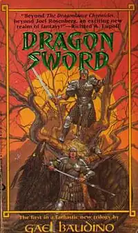 Dragonsword is a novel written by Gael Baudino and published in 1988. It is the first in the Dragonsword Trilogy. The other novels are Duel of Dragons (1989) and Dragon Death (1992). According to the author, after completing an unfinished manuscript and fleshing it out to roughly double its length, she sold it to Byron Preiss Books, a "book packaging company" looking for a "series of sword and sorcery novels including dragons and a super-magical sword", who sold it to Lynx Omeiga Books. After Lynx Omeiga went out of business, Roc Books acquired rights to the whole trilogy and reprinted Dragonsword in 1991. While reviewing Roc's galley proofs for Dragonsword, Baudino made several minor wording changes in the narrative and corrected one large error which she declines to elaborate on. Thus, the first and second editions of Dragonsword are not identical in content.[1][2]