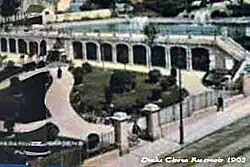 Drake's Place Reservoirs, constructed in the 1820s, are in North Hill just above Sherwell Church. They were expanded in 1891 and a 200 ft colonnade with a terrace on top was added so that people could relax by the water. The pillars of the colonnade were originally from The Shambles (butchers' stalls outside St Andrew's church) and from 1791 were re-used in the market before being relocated here.[18] In August 2010, a grant of £500,000 was awarded by the National Lottery towards the preservation of the landmark.[19]