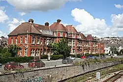 Plymouth Royal Eye Infirmary, near the main railway station, was built in 1897 by Charles King and E. W. Lister. Unusually for an area that had a tradition of building in limestone, it was constructed in red brick with stone facings.[20]