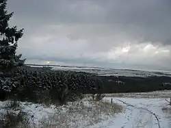 The Dreiborn Plateau (German: Dreiborner Hochfläche) is an area of woods and open terrain, some 33 square kilometres in area, in the Eifel National Park. It corresponds to the area of the Vogelsang Military Training Area which was handed back on 31 December 2005 and had been out-of-bounds to the public since 1 September 1946. Since 2006 parts of the area have been opened up to the public who may use certain routes through it.