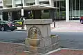 | Tyler Memorial Fountain Horse Trough at 312 Arch Street | 1869 | ![]() | Original: 500 block of Chestnut Street (in front of Independence Hall) Current: 312 Arch Street (in front of Arch Street Friends Meeting House) | Philadelphia Fountain Society | granite | ![]() "The State-House pumps were very near, if not exactly, upon the spot where fountains, surmounted by vases and intended to be decorated by flowers or shrubbery, were afterward placed by the Philadelphia Fountain Society." The Wanamaker fountain was hit by a car in the 1940s, and removed. The Tyler fountain was relocated to 312 Arch Street, 1942 Listed on the Philadelphia Register of Historic Places | [50][51][21] |