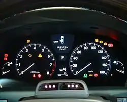 The Driver Monitoring System (DMS), also known as driver attention monitor, is a vehicle safety system to assess the driver's alertness and warn the driver if needed and eventually apply the brakes. It was first introduced by Toyota in 2006 for its and Lexus' latest models. It was first offered in Japan on the GS 450h. The system's functions co-operate with the pre-collision system (PCS).[1] The system uses infrared sensors to monitor driver attentiveness. Specifically, the driver monitoring system includes a CCD camera placed on the steering column which tracks the face,[2] via infrared LED detectors.[3] If the driver is not paying attention to the road ahead and a dangerous situation is detected, the system will warn the driver by flashing lights, warning sounds. If no action is taken, the vehicle will apply the brakes (a warning alarm will sound followed by a brief automatic application of the braking system). This system is said to be the first of its kind.[2]