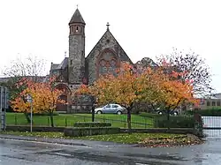 The town had a population of 20,458 at the 2021 census.[5] At the time of 2011 census, the former district council, which was the largest in County Tyrone, had a population of 51,356.[6] Omagh contains the headquarters of the Western Education and Library Board, and also houses offices for the Department of Agriculture, Environment and Rural Affairs at Sperrin House, the Department for Infrastructure and the Northern Ireland Roads Service at the Tyrone County Hall and the Northern Ireland Land & Property Services at Boaz House.