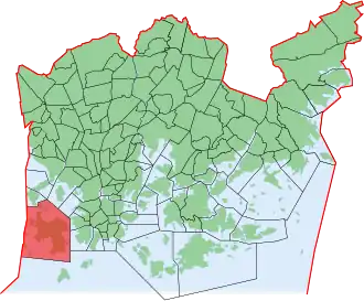 Lauttasaari (Finnish: [ˈlɑu̯tːɑˌsɑːri]; Swedish: Drumsö) is an island in Helsinki, Finland, about 3 kilometres (1.9 mi) west of the city centre. Together with some surrounding unpopulated small islands, Lauttasaari is also a district of Helsinki. With 23,226 residents as of 2017,[1] the island is Finland's second largest by population, after Fasta Åland. Its land area is 3.85 km2.