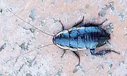 The common shining cockroach (Drymaplaneta communis) is a cockroach native to south-east Australia.[1] It feeds on organic matter and is often found under the bark of eucalypt trees. During the late 1990s and 2000s, this cockroach appears to have had a population explosion in Sydney and Melbourne and is commonly found inside houses.[2] This population increase likely coincides with an extended dry period, where many suburban gardeners added mulch to their gardens which provided a habitat for the common shining cockroach.[3] Despite commonly being found inside houses, the common shining cockroach does not pose the same health risk as introduced cockroaches.[4][5]