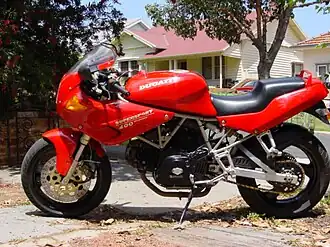 The Ducati Supersport and SS are a series of air-cooled four stroke desmodromic 2-valve 90° L-twin motorcycles made by Ducati since 1988. A limited edition Supersport called the SuperLight was sold in 1992. The name harked back to the round case 1973 Ducati 750 Super Sport, and the 1975 square case 750 and 900 Super Sport. The appellation 'SS' was applied only to the later belt drive (Pantah) based models.