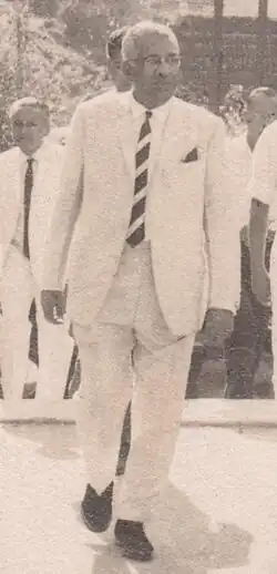 Dudley Shelton Senanayake (Sinhala: ඩඩ්ලි ශෙල්ටන් සේනානායක: Tamil: டட்லி சேனநாயக்கா; 19 June 1911 – 13 April 1973), was a Sri Lankan statesman who thrice served as Prime Minister of Ceylon, from 1952 to 1953 (as the second prime minister of Ceylon), in 1960, and from 1965 to 1970 , and Leader of the Opposition from 1960 to 1964. Senanayake's tenures as prime minister were associated with democratic policies focused on agricultural and educational reforms with a pro-western alignment.