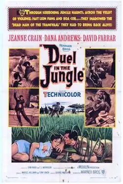 Duel in the Jungle is a 1954 British adventure film combining the detective film with the jungle adventure genres directed by George Marshall and starring Dana Andrews, Jeanne Crain and David Farrar.[3] It was shot at the Elstree Studios near London and on location in Southern Africa. The film's sets were designed by the art director Terence Verity. It was produced by Associated British in conjunction with Marcel Hellman. It was released in the United States by Warner Bros.