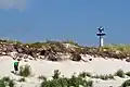 Bornholm features varied topography, such as Almindingen, Hammeren, Jons Kapel, Paradisbakkerne, Rytterknægten, and Dueodde.[4] The lighthouse was built on the western side of Dueodde's sand dunes,[5] on the island's extreme southern tip.