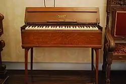 A dulcitone is a keyboard instrument in which sound is produced by a range of tuning forks, which vibrate when struck by felt-covered hammers activated by the keyboard. The instrument was designed by Thomas Machell of Glasgow in the 1860s, at the same time as Victor Mustel's organologically synonymous typophone,[1] and manufactured by the firm of Thomas Machell & Sons during the late nineteenth and early twentieth centuries.