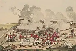 After the failure of Ross' campaign MacDougall continued on in North America, this time in the Gulf Campaign as ADC to Major-General Sir Edward Pakenham. At the Battle of New Orleans on 8 January 1815 MacDougall lost his second general.[1] As British troops began to flee from the assault on the American defences, Pakenham rode forward to stop the retreat, with MacDougall by his side. Pakenham succeeded in rallying the soldiers for another assault, but was then shot in the knee and had his horse killed. MacDougall stood Pakenham up and mounted him on his pony, leading Pakenham forwards while he shouted at his soldiers. The general was then shot through the spine and mortally wounded, dying as he was carried away from the fighting.[6][7][8]