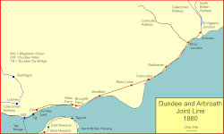 It was absorbed by the larger Caledonian Railway, but when the North British Railway completed the construction of the Tay Bridge in 1878, it was granted part ownership of the line to enable it to form its main line to Aberdeen, so the line became the Dundee and Arbroath Joint Line.