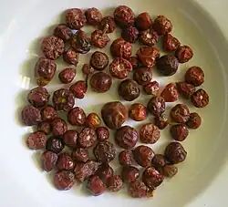 Dundicut peppers are a variety of small, round (approx. 1/2" to 1" diameter), dark red chili peppers grown in Sindh, in Pakistan, Sikkim in India and Ilam in Nepal. They are a cultivar of either Capsicum frutescens or Capsicum annuum[1] and are also known in Asia as gol lal mirch. Sold dried, Dundicuts are similar in size and flavor to Scotch bonnet peppers, but are not as hot, and are of a different species.