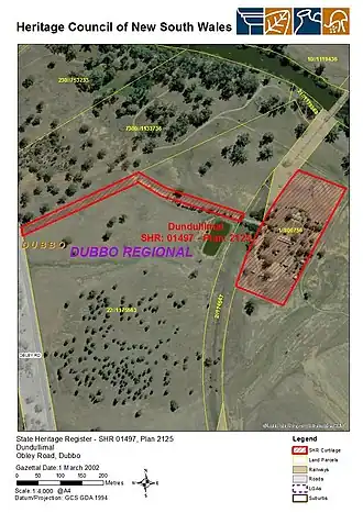 Text is licensed by State of New South Wales (Department of Planning and Environment) under CC BY 4.0 licence. - ^ a b "Dundullimal Homestead and Stone Barn, 23 Obley Road, Dubbo, NSW, Australia (Place ID 18215)". Australian Heritage Database. Australian Government. 30 June 1992. Retrieved 20 September 2017.