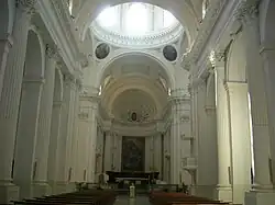Valadier's Neoclassical interior is on a Latin cross groundplan and has a central nave between two side aisles, under a barrel vaulted roof. The crossing of the transept supports an impressive coffered cupola.