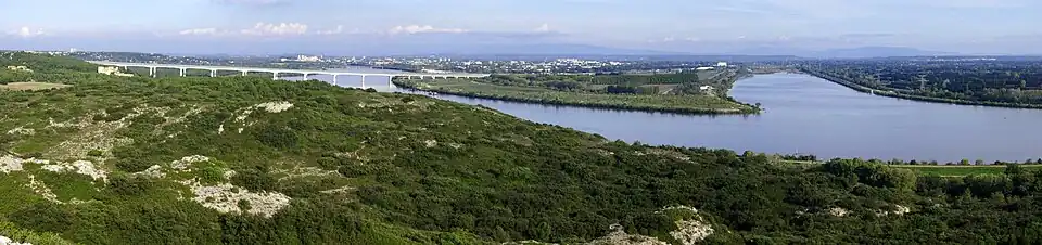 ![]() A view of the Durance south of Cavaillon with the LGV Méditerranée viaduct | |