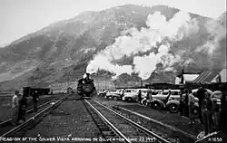 Since 1971, the Silverton branch and nearby Cumbres and Toltec Scenic Railroad (C&TSRR) were the only remnants of the Rio Grande's once extensive narrow-gauge system.[6] During the late 1970s, the D&RGW was actively trying to sell the Silverton branch and, in 1979, Charles Bradshaw, a Florida citrus grower, offered the railroad a legitimate opportunity to divest itself of the now-isolated route. On October 5, 1980, The Silverton made its last run under D&RGW ownership and, after operating a work train the following day, the railroad finally concluded its 3 ft (914 mm) narrow-gauge train operations,[16] bringing to a close an era that began 110 years earlier with its narrow-gauge railroad from Denver to Colorado Springs.