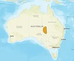 The species historically inhabited large areas of central Australia, south-west Queensland, and far west South Australia,[14] and Western Australia.[15] Sub-fossil specimens were found in far-south South Australia, near the Flinders Ranges.[14] Populations were recorded in the Northern Territory, however have not been observed since 1939.[16][17] It is highly likely to have occurred in western New South Wales.[18] Distribution has shown a marked decline of more than 90% since the arrival of Europeans,[14] with populations now patchy and highly fragmented.[2][14] It is currently thought to be restricted to the Cobblers Sandhills and Strzelecki Desert in north-east South Australia,[14][15] south-west Queensland and far north-west New South Wales.[7][19] The species was presumed to be extinct in New South Wales, before being re-discovered in Sturt National Park in 2003.[18][20] Since then, a number of sightings have been recorded near Broken Hill, New South Wales.[20][21]