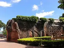 Dutch bricks and brickwork were also imported and utilized in other colonies throughout the Dutch Empire in Asia, Africa, and the Caribbean. Fort Zeelandia was built on a small island off Tainan in Formosa (Taiwan) between 1624 and 1634 after the Dutch acquired Formosa from China as a trading colony. It was built using bricks from Batavia (Jakarta), where the Dutch East India Company had its headquarters.[34] After a siege in 1662, the Dutch surrendered the fort to Koxinga, a Ming dynasty general. The fort was destroyed by an explosion in 1873 when a shell from a British warship blew up the ammunition storehouse. The masonry was later used for other purposes. All that remains is part of the southern wall.[35]