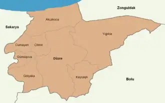 Düzce province is divided into 8 districts (capital district in bold):