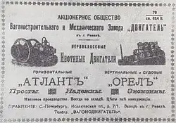 Dvigatel was established in 1897 after czar Nikolai II signed the statute of company "Dvigatel". At the beginning it produced railway wagons.[1]