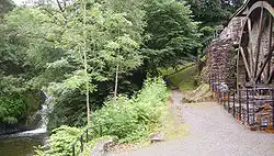 The water wheel, shown in the photographs, provided power for a sawmill.[3]