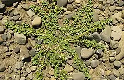 Dysphania pusilla, a New Zealand endemic,[1] is generally located in the north-eastern corner of the South Island of New Zealand;[5] Harry Allan in his Flora of New Zealand (1961) mentions that it does not grow south of 43°30'S.[6][7] The plant is usually found in dry, sparsely-vegetated open spaces, including ephemeral wetlands, but has also been known to bloom in urban environments such as railway yards and agricultural land.[8]