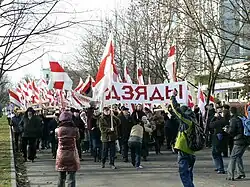 In Belarus, dziady began to gain in importance in the late 1980s and were particularly important for Belarusian Catholics, for whom this day became a symbol of memory of the victims of the communist regime. On October 30, 1988, the first mass gathering was organized, not by the authorities but by activists, to commemorate the victims in 20th century Belarus. The authorities of that time, which did not like it, dispersed the assembly with the help of the militsiya. The dziady ceased to be a day off in 1996, when the holiday began to be associated with the democratic opposition. Nowadays, hundreds of thousands of Belarusians are taking leave on demand to honor their ancestors on November 1 and 2.[12] In 2017, the President of the Episcopal Conference of Belarus, Tadeusz Kondrusiewicz, said that the dziady should be a day off from work, instead of the October Revolution on November 7. He also supported the Internet petition for granting the status of a day off from work to grandfathers,[13] which has now collected over 2500 signatures.[14]