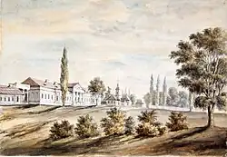 Dereczyn was a private town, owned by the Kopoczewicz, Połubiński and Sapieha families,[2] administratively located in the Słonim County in the Nowogródek Voivodeship of the Polish–Lithuanian Commonwealth. In 1629, Konstanty Połubiński with his wife Zofia founded a Dominican monastery, whereas the Sapiehas built a palace in 1786.[2]