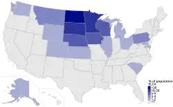 In 2025, Pew Research estimated that 1.4 percent[6] of the U.S. adult population self-identifies with the ELCA; more broadly, 2% of US adults, or 5.2 million people, identified with the ELCA and mainline Lutheranism.[7] It is the seventh-largest Christian denomination by reported membership[8] and the largest Lutheran denomination in the United States.[9] The next two largest Lutheran denominations are the Lutheran Church–Missouri Synod (LCMS) (with over 1.7 million baptized members[10]) and the Wisconsin Evangelical Lutheran Synod (WELS) (with approximately 340,000 members).[11] There are also many smaller Lutheran church bodies in the United States, some formed by dissidents to the major 1988 merger. Its members are largely descendants of Scandinavians and Germans who emigrated from countries where Lutheranism was the state religion.