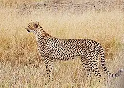 The East African cheetah (Acinonyx jubatus jubatus), is a cheetah population in East Africa.[2] It lives in grasslands and savannas of Tanzania, Kenya, Uganda and Somalia. The cheetah inhabits mainly the Serengeti ecosystem, including Maasai Mara, and the Tsavo landscape.