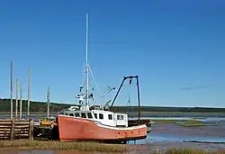 The community is located on two sides of the Apple River, a small river which widens dramatically to produce a large, shallow tidal harbour facing Chignecto Bay, an arm of the Bay of Fundy. The river and harbour are bordered by extensive tidal salt marshes, protected by Cape Capstan to the East and a long sand bar to the west. The two sides of the harbour are known as East Apple River and West Apple River. Apple River is located on Route 209 and one of the communities that form the Fundy Shore Ecotour.[2] A tidal, small craft harbour at the end of the bar serves as base to several small commercial fishing boats. A small grass air strip known as the Apple River Airport is located in West Apple River.