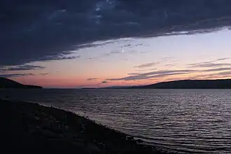 East Bay is one of three long narrow arms that extend to the east of the main body of the Bras d'Or Lake, the others being St. Andrews Channel and Great Bras d'Or Channel.[3] As East Bay is part of the Bras d'Or Lake system and the lake is essentially a fiordal system connected to the North Atlantic via two restricted channels at the Great Bras d'Or Channel north of Boularderie Island and the Little Bras d'Or Channel to south of Boularderie Island, the waters of East Bay are brackish, partially fresh/ salt water.
