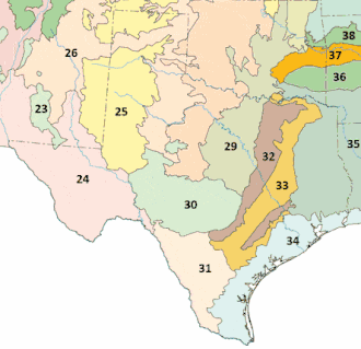 This article incorporates public domain material from Ecoregions of Texas poster, back (PDF). United States Geological Survey. Archived from the original (PDF) on May 31, 2023. Retrieved 2016-02-06.