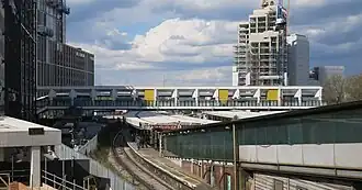 It was announced in 2010 that Network Rail had proposed a £20m project to revamp the station with an additional entrance and a shortcut into the town centre.[21] In September 2010, Croydon Council pledged £6m towards the revamp, ensuring that a bridge was included in the plans.[21] The new bridge was officially opened in December 2013, providing pedestrian transfer between platforms as well as a new entrance at the northern end of the platforms and a more direct link to the town centre.[22] The new walkway may be accessed from the town centre on the west via Lansdowne Walk, with access from Cherry Orchard Road on the east included in local development plans.[23][24]
