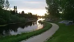 A habitat rehabilitation project at Birds Hill, Manitoba transformed a depleted gravel pit into Silver Springs Park, with trails, a lake, and homes built along part of its perimeter. The pit dates to the late 19th century, when the Canadian Pacific Railway needed gravel ballast for its rail lines. The deposit was later worked to serve Winnipeg's needs for aggregate. Over the years, more than 20 million tonnes of gravel were removed from the site. The depleted quarry was graded and landscaped with native grasses and more than 1,200 trees and shrubs.[15] Geese, ducks, terns, gulls, American white pelicans, songbirds, foxes, rabbits, western painted turtles, muskrats and deer are frequently observed. In 2020 Silver Springs Park was renamed Swistun Family Heritage Park to recognize the prominent local family that was responsible for the rehabilitation of the quarry as a park, its landscaping, and establishment of ponds. In 1993, the Province of Manitoba profiled the project as what can be achieved with mining rehabilitation, and brought in a 10 cent charge for every ton extracted out of a mine or gravel pit. In 2021 this park was nationally recognized with the Butchart Gardens Land Reclamation Award by the Canadian Communities in Bloom.