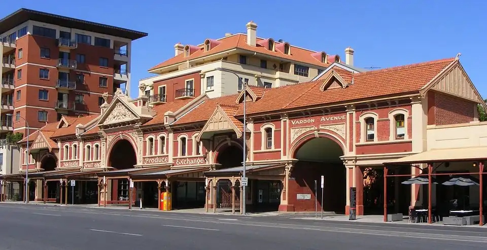 Adelaide's original wholesale fruit and vegetable market was supplemented by a competitor: William Charlick's Adelaide Fruit and Produce Exchange, which opened for business in May 1904,[8] developing a long frontage along East Terrace between Grenfell and Rundle streets.