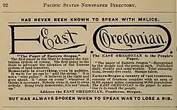 - ^ a b c d MacNab, Gordon G. (April 20, 1975). "Pendleton's feisty newspaper joins 100-year club | East Oregonian's early editors used fists as well as words to put their point across". The Sunday Oregonian. p. 49.