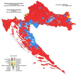 The published data from the 2021 Croatian census included a crosstab of ethnicity and religion,[3] which showed that a total of 128,395 Eastern Orthodox believers (3.32% of the total population) was divided between the following ethnic groups: