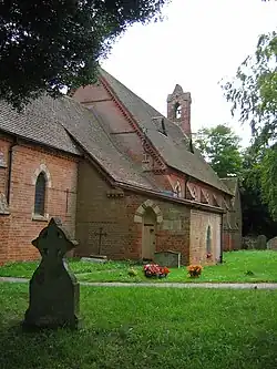 Easterton was anciently a tithing of St Mary's, Market Lavington.[4] In 1874 a new ecclesiastical parish was created by combining the tithing with those of Fiddington (transferred from West Lavington) and Eastcott (from Urchfont).[7] This was made possible by Rev George Bourdieu Rogers (d. 1872) of Easterton, who left money and land to the Ecclesiastical Commissioners to endow the new parish, together with his house which he intended to be used as a parsonage.[7] Louisa Hay, widow of Samuel Hay, of Clyffe Hall, Market Lavington, gave a further £1,500 endowment and undertook to build a church for Easterton.[7]