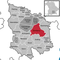 Ebersberg (German pronunciation: [ˈeːbɐsˌbɛʁk] ⓘ) is the seat of the similarly named Ebersberg Landkreis (district) in the Oberbayern Regierungsbezirk (administrative region) in Bavaria, southern Germany. The Ebersberger Forst (forest) is one of Germany’s largest continuous area of woodlands.